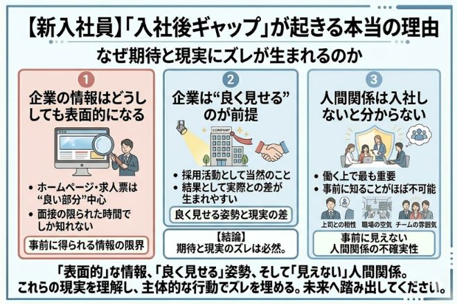 多くの新入社員が、「思っていた仕事とのギャップ」や「職場環境の違い」に悩んでいます。