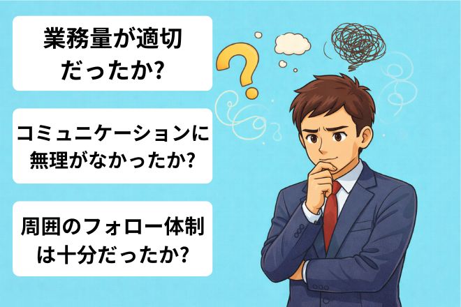 「業務量や人間関係に無理はなかったか」