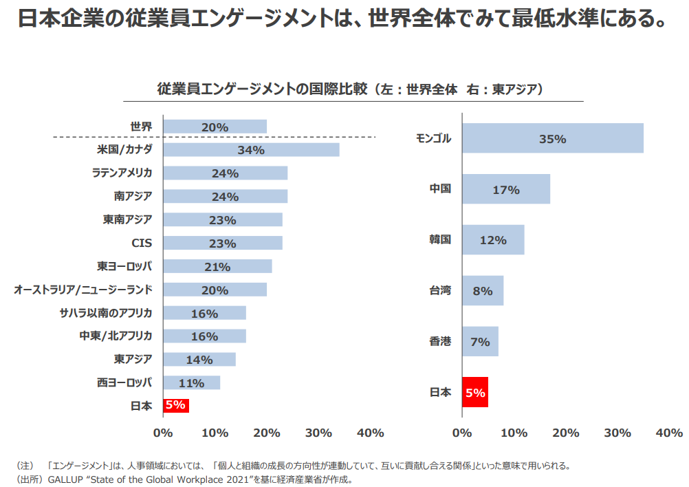 こちらは、経済産業省が作成した、2021年の日本企業の従業員エンゲージメントになります。